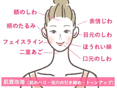 コラーゲンが増えることで、ハリツヤUP・小じわの改善・毛穴の引き締め・リフトアップなどの効果が現れる。